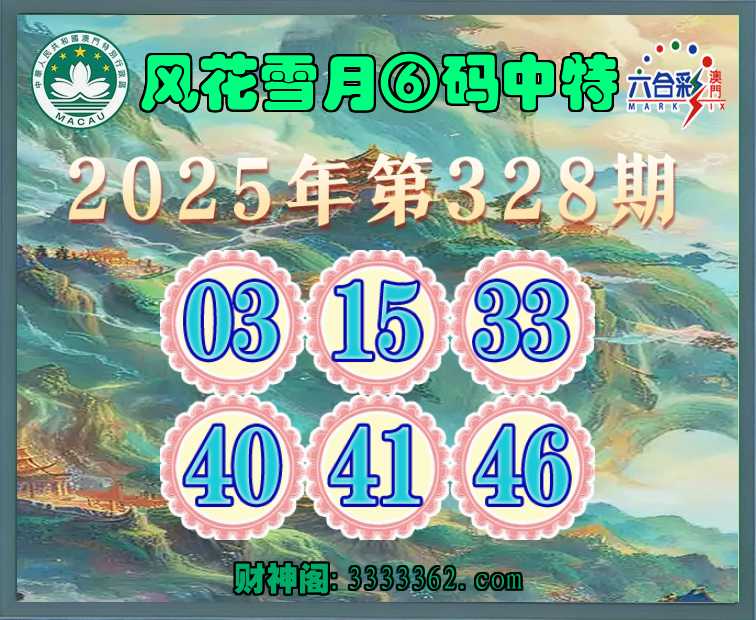 328期:《风花雪月》 🍏⑥码中特🍏【03.15.33.40.41.46】开:03