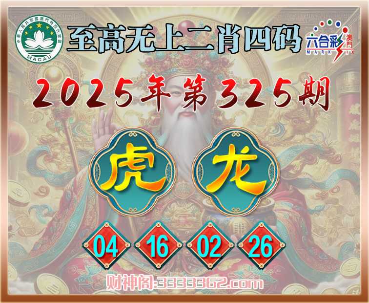 325期:【至高无上】 🍧二肖四码🍧【龙】【04.16.02.26】开:虎04