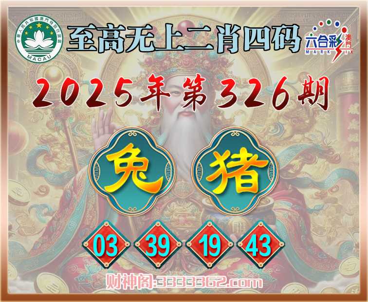 326期:【至高无上】 🍧二肖四码🍧【兔】【03.39.19.43】开:猪19