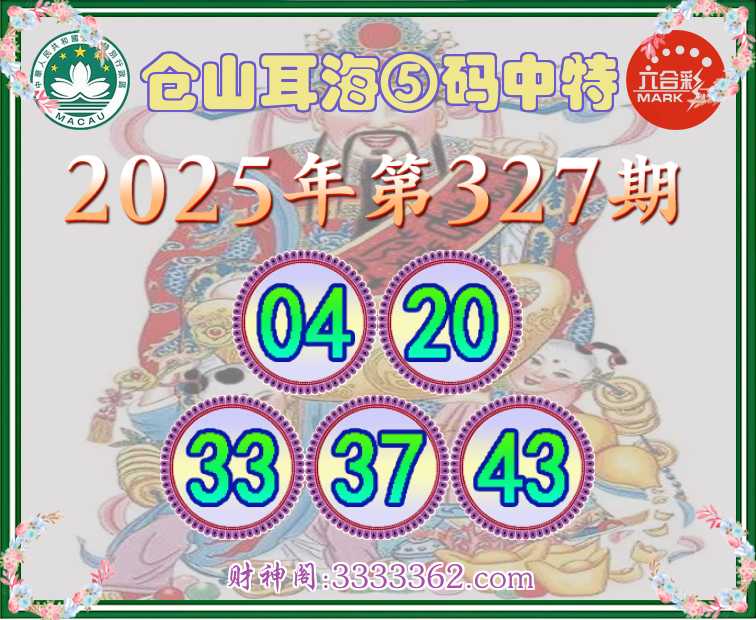 327期:《仓山耳海》 💎⑤码中特💎【04.20.33.37.43】开:37