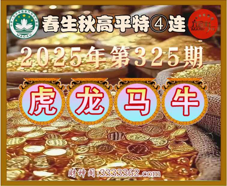 325期: 🚡『春生秋高』 🚡平特④连🚡【虎龙马牛】开:虎04,龙02,马12,牛05