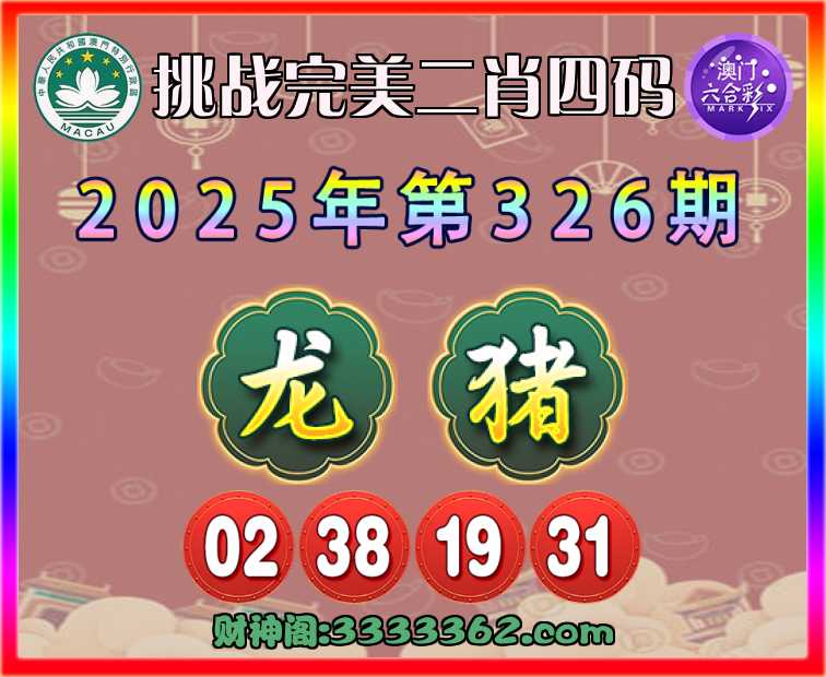 326期:《挑战完美》 ✂️二肖四码✂️【龙】【02.38.19.31】开:猪19