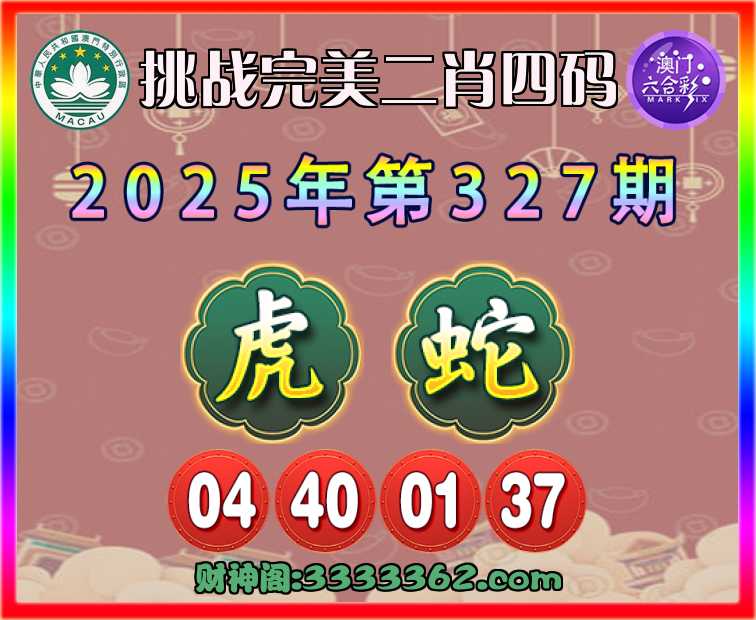 327期:《挑战完美》 ✂️二肖四码✂️【虎】【04.40.01.37】开:蛇37