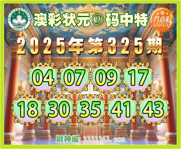 325期:【澳彩状元】 🏃‍♀️⑨码中特🏃‍♀️开:04
