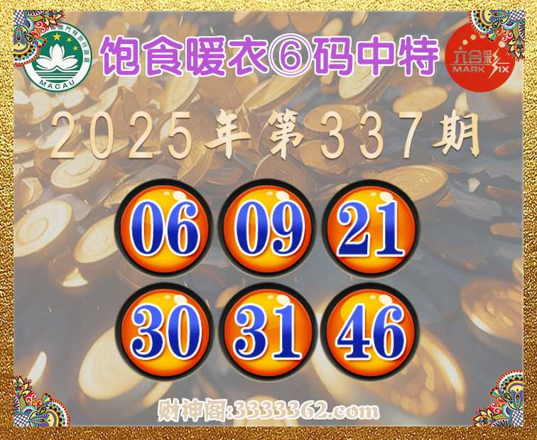337期:〖饱食暖衣〗⑥码中特⌚【06.09.21.30.31.46】开:09