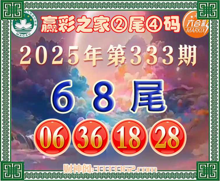 333期:【赢彩之家】 📙②尾④码📙【68尾主:06.36.18.28】开:06