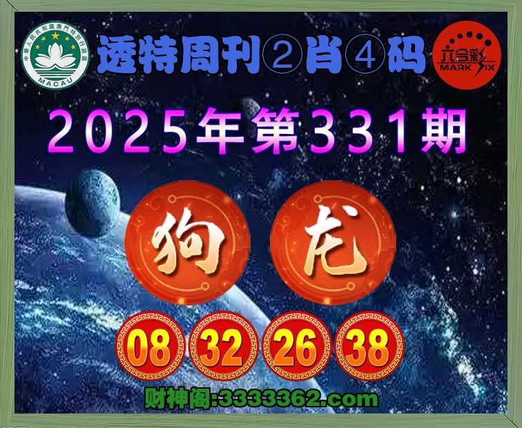 331期:『透特周刊』 🌷②肖④码🌷【狗】【08.32.26.38】开:龙26