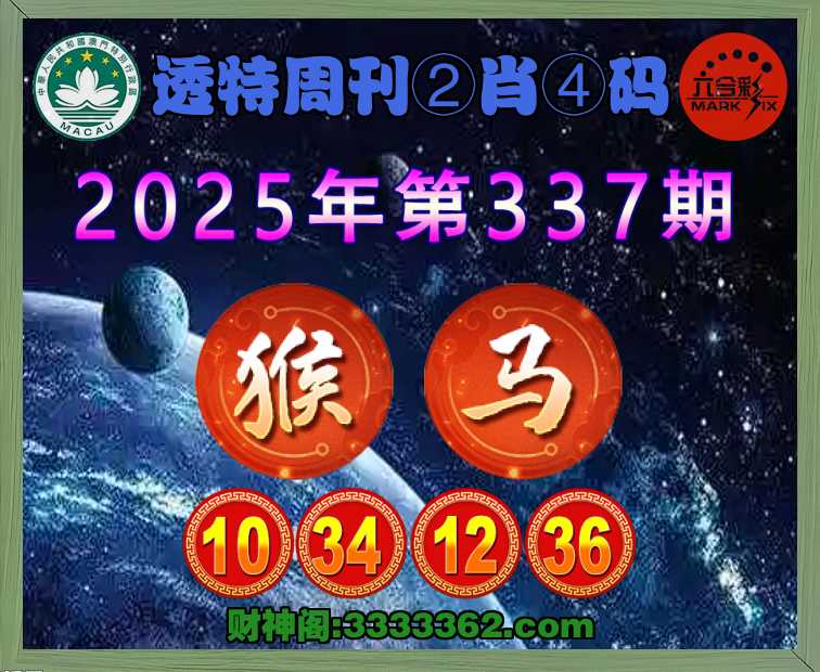 337期:『透特周刊』 🌷②肖④码🌷【猴马】【10.34.12.36】开:00准