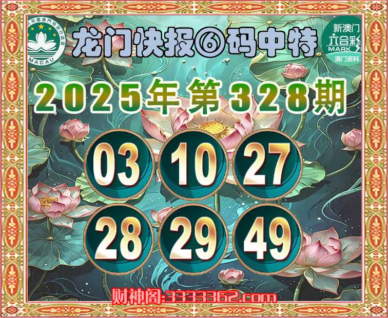 328期: 🧧『龙门快报』 🧧⑥码中特🧧【03.10.27.28.29.49】开:03