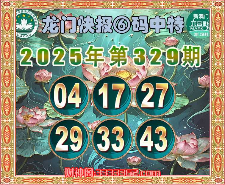 329期: 🧧『龙门快报』 🧧⑥码中特🧧【04.17.27.29.33.43】开:17
