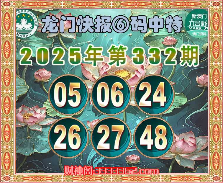 332期: 🧧『龙门快报』 🧧⑥码中特🧧【05.06.24.26.27.48】开:26