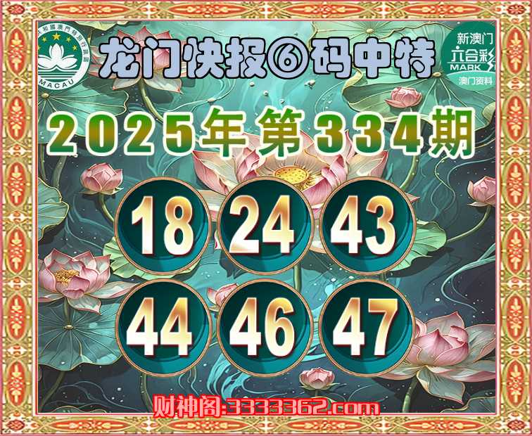 334期: 🧧『龙门快报』 🧧⑥码中特🧧【18.24.43.44.46.47】开:46