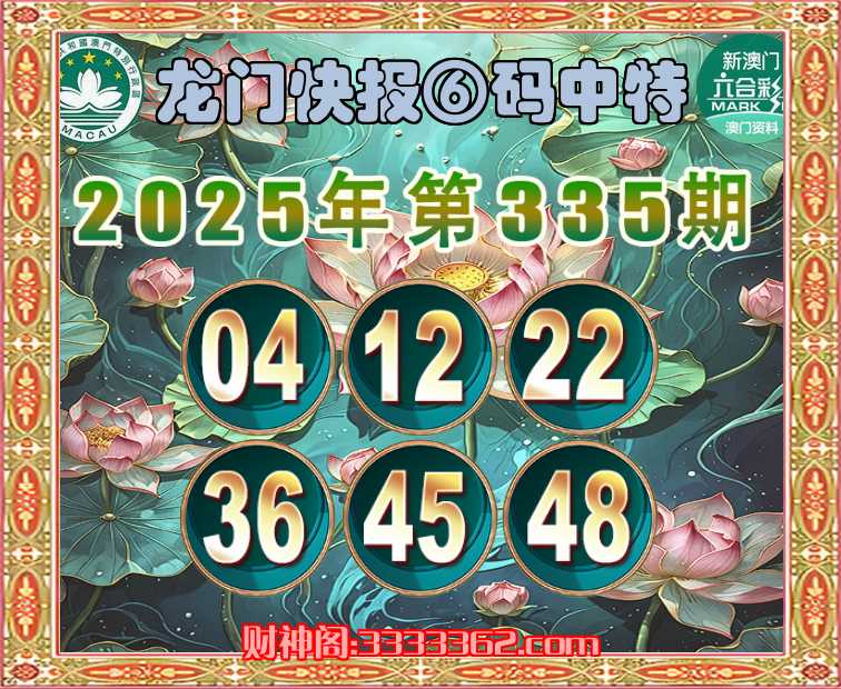 335期: 🧧『龙门快报』 🧧⑥码中特🧧【04.12.22.36.45.48】开:00准