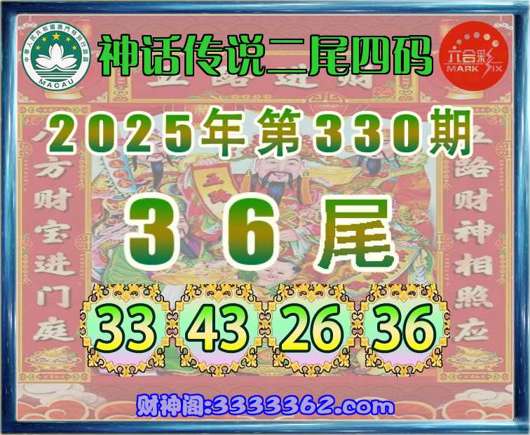 330期:『神话传说』 🍔二尾四码🍔【36尾主:33.43.26.36】开:36