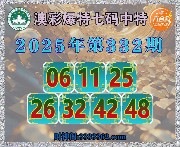 332期:《澳彩爆特》 🤘七码中特🤘【06.11.25.26.32.42.48】开:26