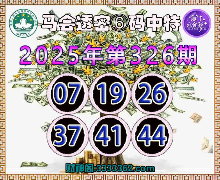 326期: 👑『马会透密』 👑⑥码中特👑【07.19.26.37.41.44】开:19