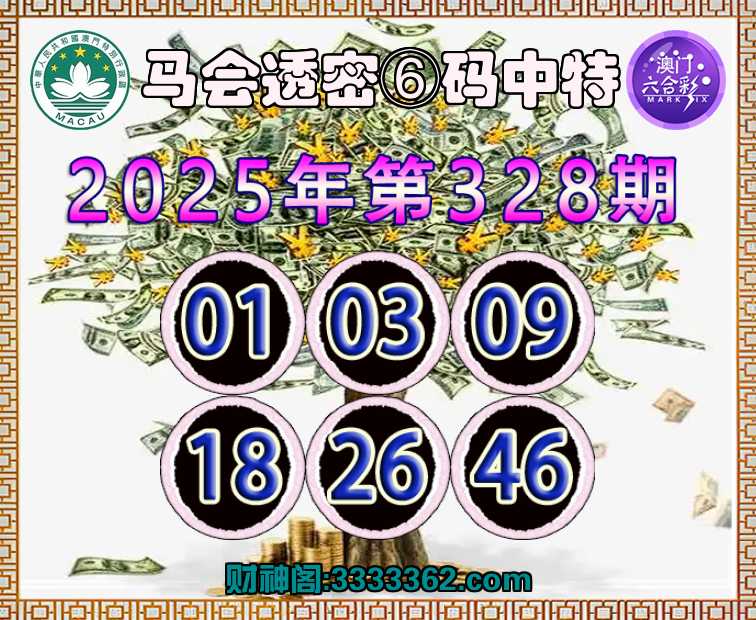 328期: 👑『马会透密』 👑⑥码中特👑【01.03.09.18.26.46】开:03