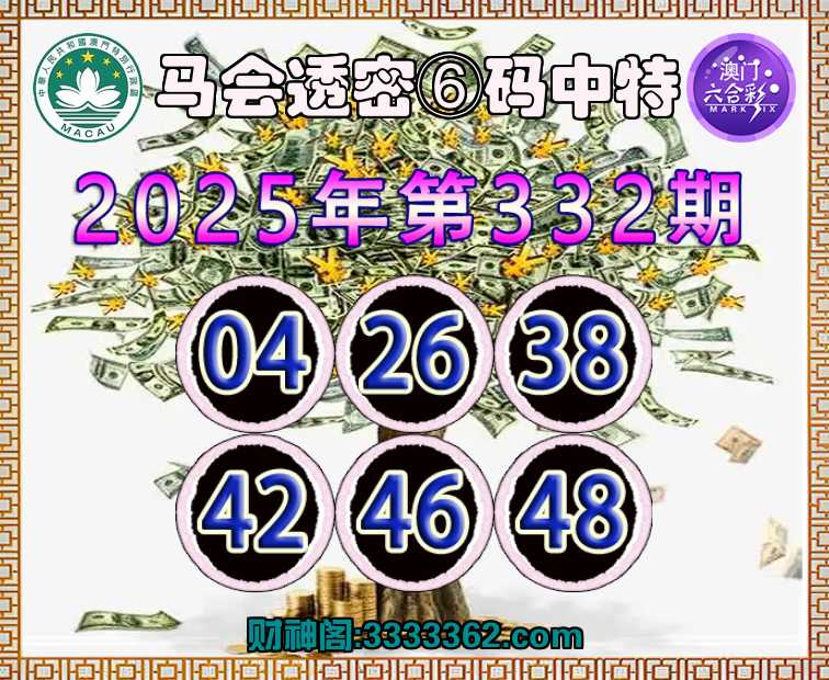 332期: 👑『马会透密』 👑⑥码中特👑【04.26.38.42.46.48】开:26