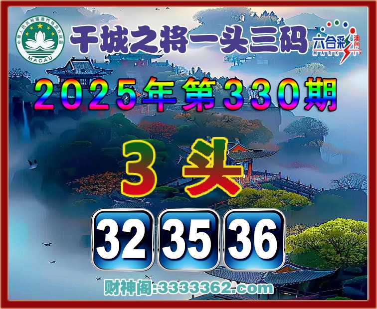 330期:〖干城之将〗 🍟一头三码🍟【3头主:32.35.36】开:马36