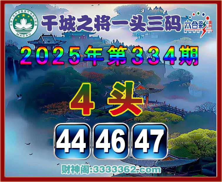 334期:〖干城之将〗 🍟一头三码🍟【4头主:44.46.47】开:猴46