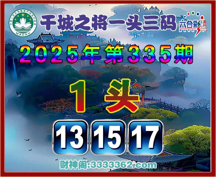 335期:〖干城之将〗 🍟一头三码🍟【1头主:13.15.17】开:00准