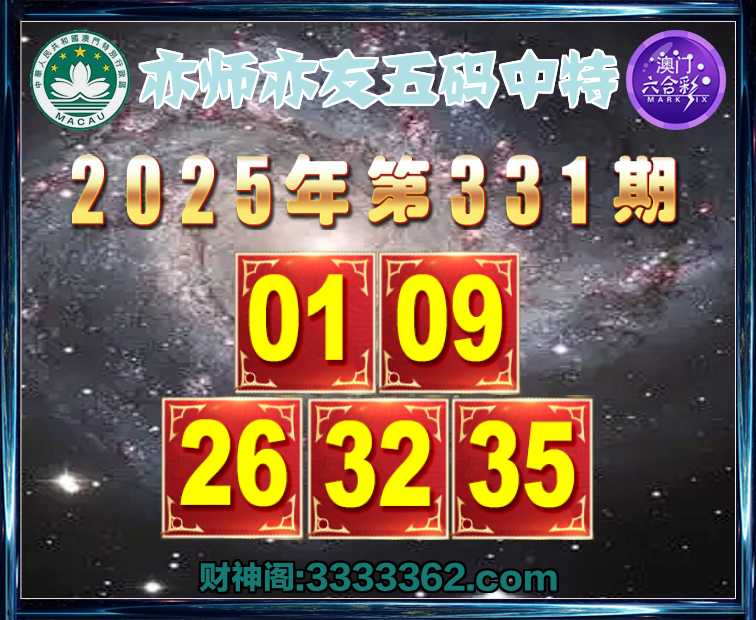 331期:【亦师亦友】 🏃‍♀️五码中特🏃‍♀️【01.09.26.32.35】开:26
