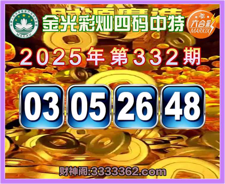 332期: 金光彩灿 🎆四码中特🎆【03.05.26.48】开:26