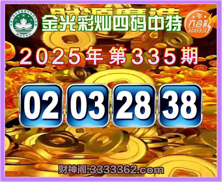 335期: 金光彩灿 🎆四码中特🎆【02.03.28.38】开:00准