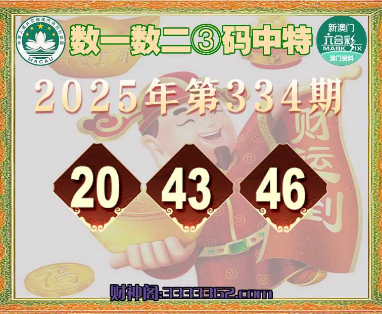 334期:『数一数二』 📙③码中特📙【20.43.46】开:46