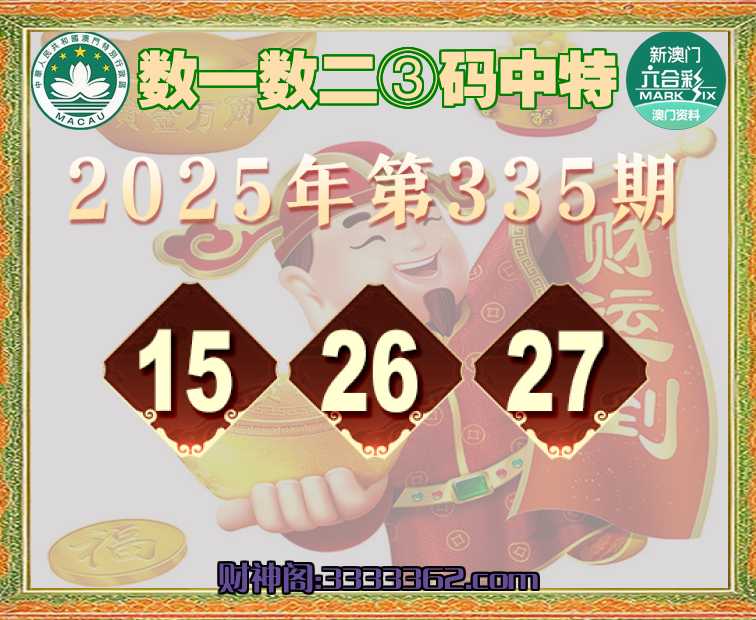 335期:『数一数二』 📙③码中特📙【15.26.27】开:00准