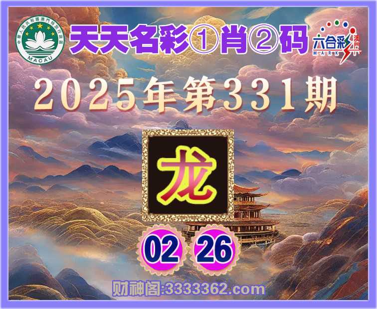 331期:『天天名彩』 👈①肖②码👈【】【02.26】开:龙26