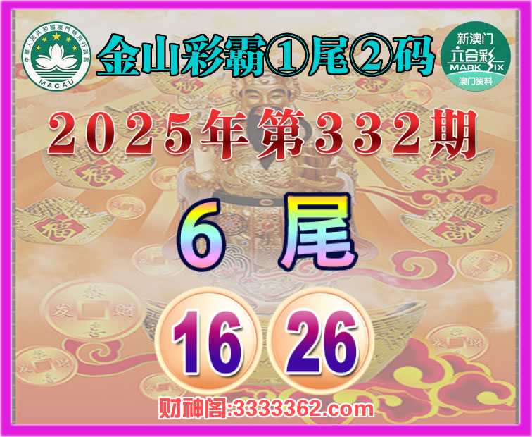 332期:〖金山彩霸〗 🧸①尾②码🧸【6尾主:16.26】开:26