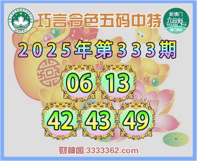 333期:〖巧言令色〗五码中特⚽【06.13.42.43.49】开:06