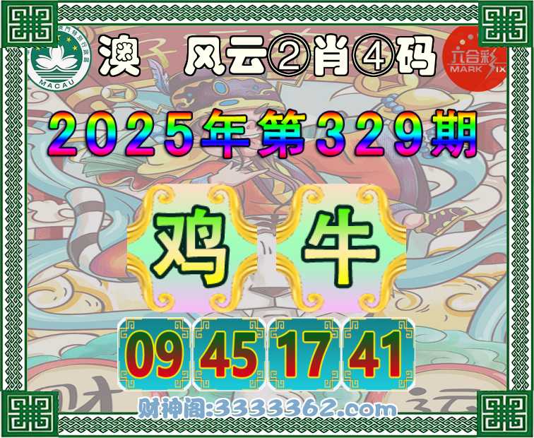 329期: ☝️『澳門风云』 ☝️②肖④码☝️【鸡】【09.45.17.41】开:牛17