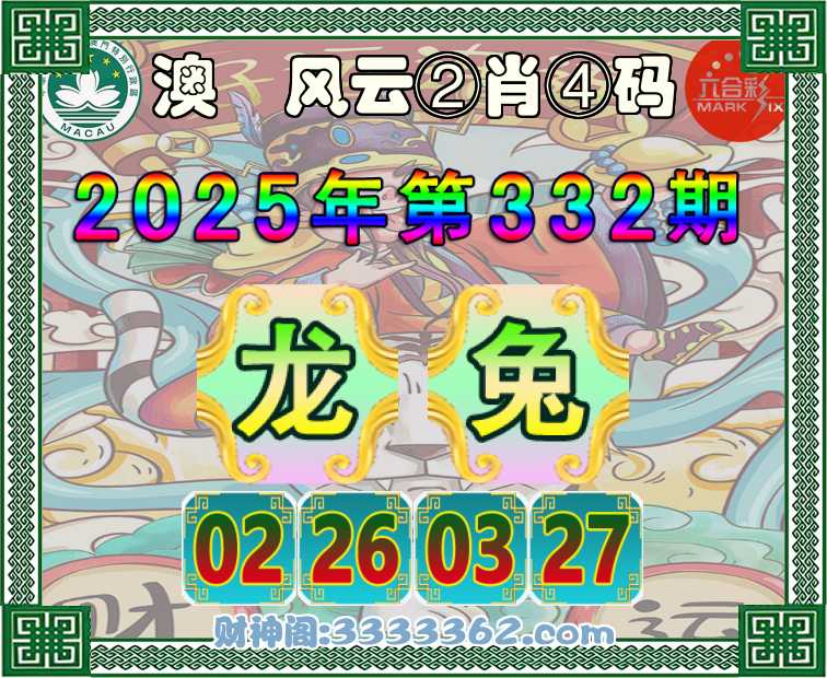 332期: ☝️『澳門风云』 ☝️②肖④码☝️【兔】【02.26.03.27】开:龙26