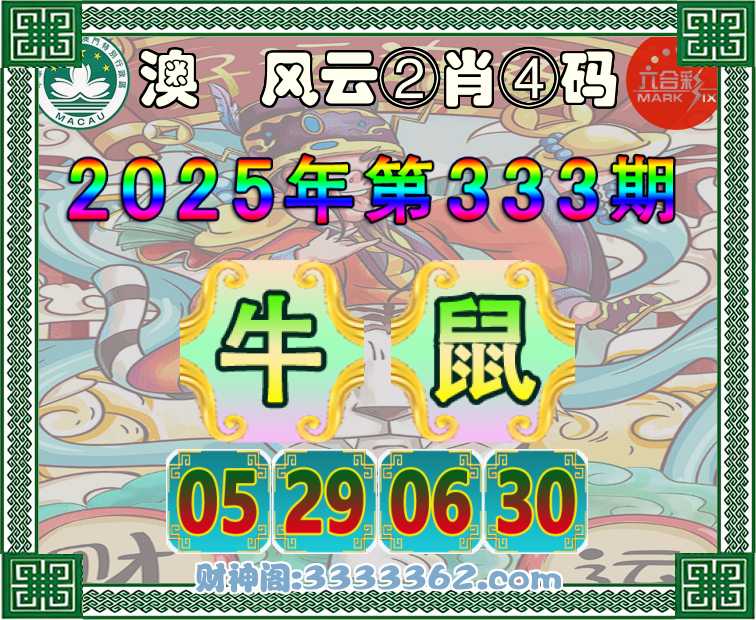 333期: ☝️『澳門风云』 ☝️②肖④码☝️【牛】【05.29.06.30】开:鼠06