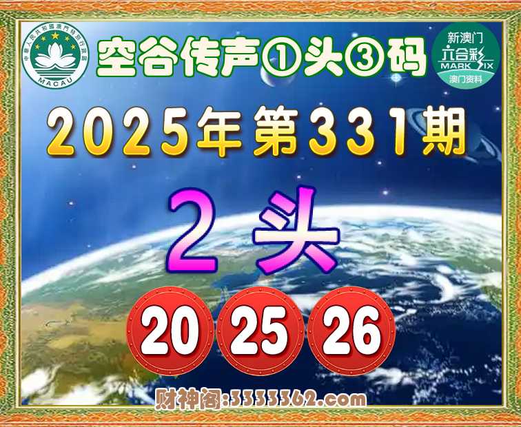 331期:💄空谷传声💄①头③码💄【2头主:20.25.26】开:龙26