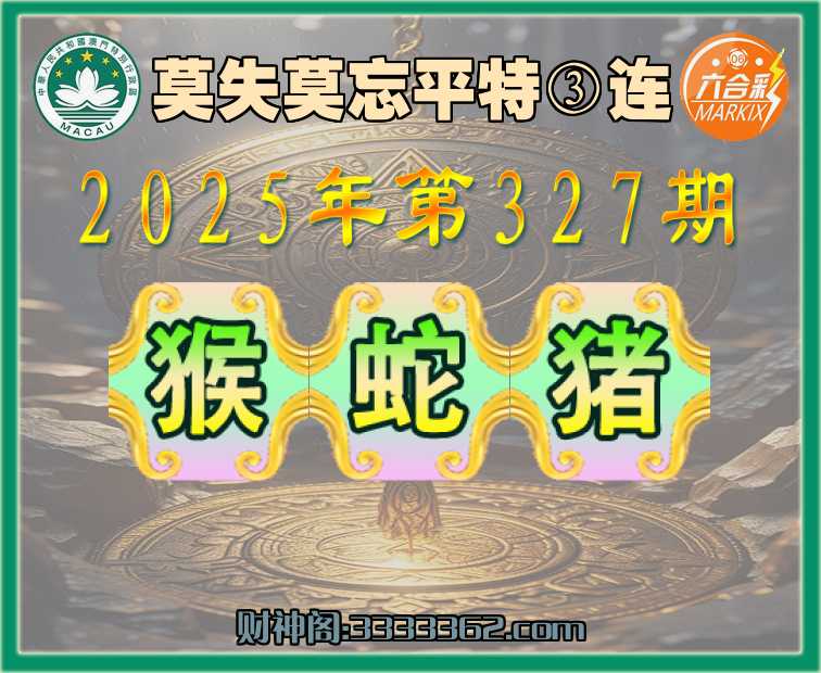 327期: 🍔『莫失莫忘』 🍔平特③连🍔【猴蛇猪】开:猴22,蛇37,猪31