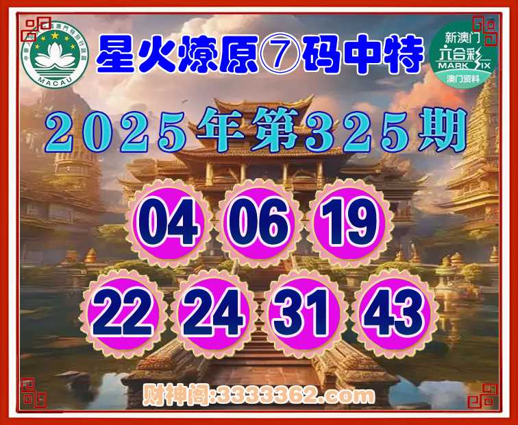 325期:【星火燎原】 🧤⑦码中特🧤【04.06.19.22.24.31.43】开:04