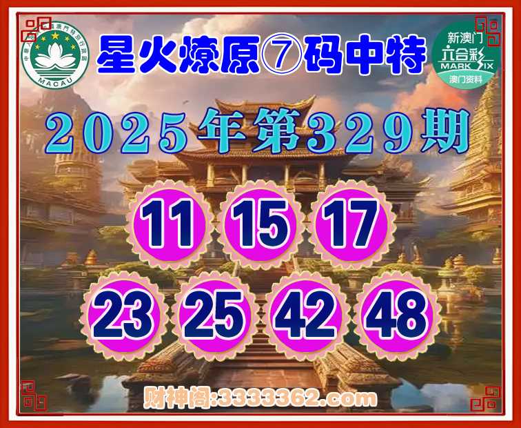 329期:【星火燎原】 🧤⑦码中特🧤【11.15.17.23.25.42.48】开:17