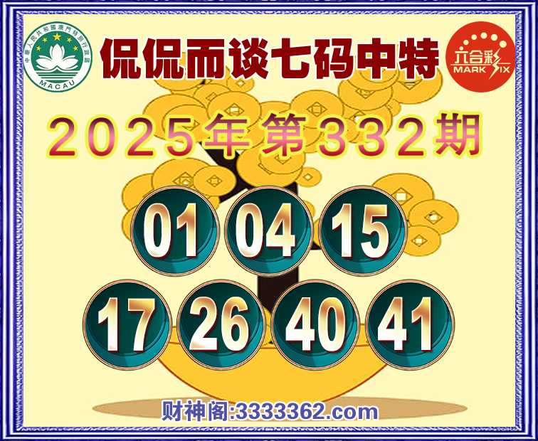 332期:『侃侃而谈』 🤘七码中特🤘【01.04.15.17.26.40.41】开:26