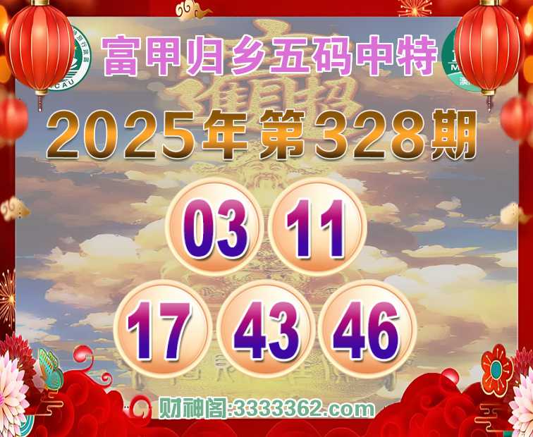 328期:『富甲归乡』 😜五码中特😜【03.11.17.43.46】开:03