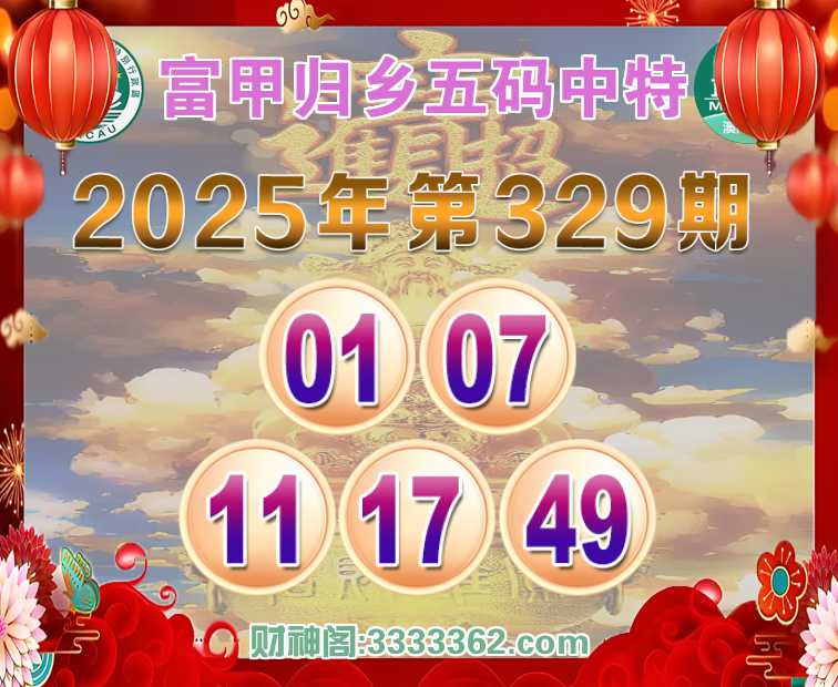 329期:『富甲归乡』 😜五码中特😜【01.07.11.17.49】开:17