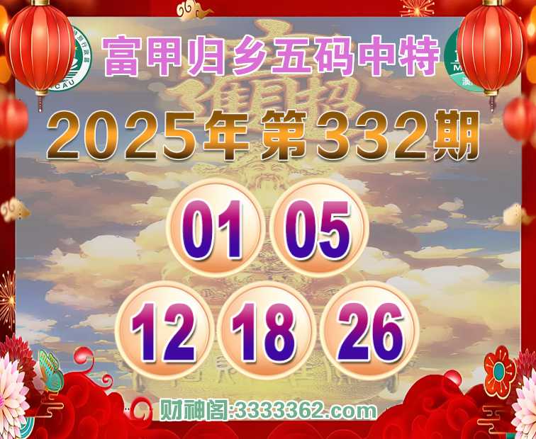 332期:『富甲归乡』 😜五码中特😜【01.05.12.18.26】开:26