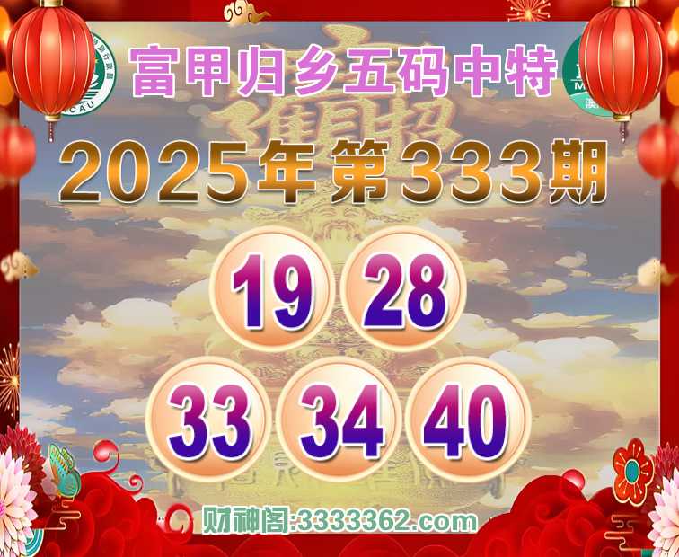 333期:『富甲归乡』 😜五码中特😜【19.28.33.34.40】开:00准