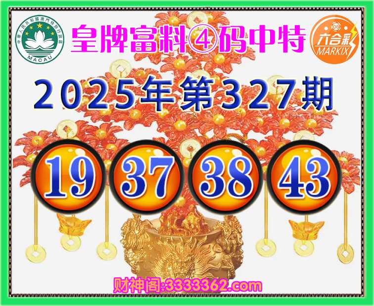 327期:【皇牌富料】 🥉④码中特🥉【19.37.38.43】开:37
