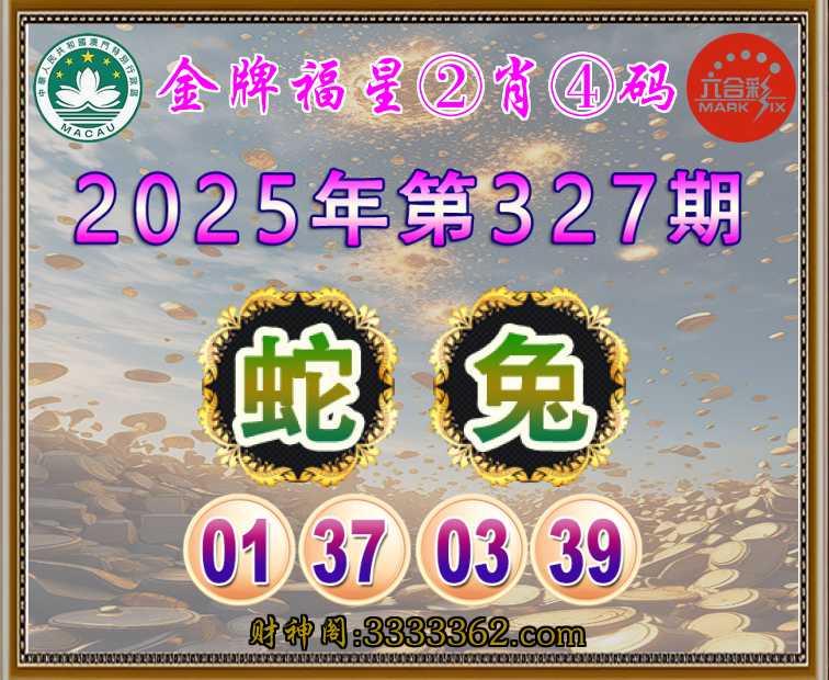 327期: 金牌福星 🐁②肖④码🐁【兔】【01.37.03.39】开:蛇37