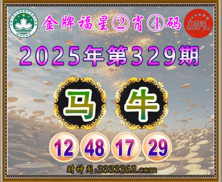 329期: 金牌福星 🐁②肖④码🐁【马】【12.48.17.29】开:牛17