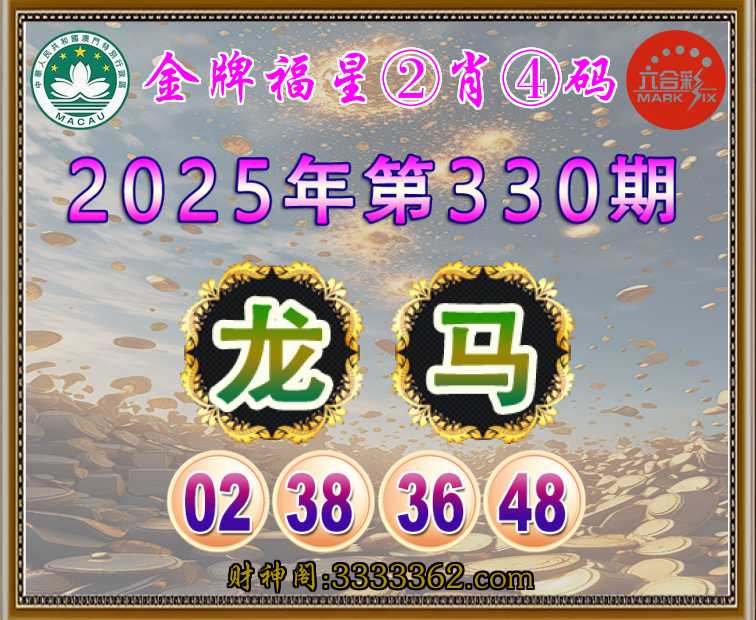 330期: 金牌福星 🐁②肖④码🐁【龙】【02.38.36.48】开:马36