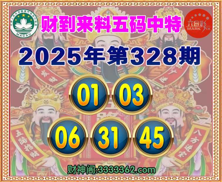 328期:【财到来料】 🥽五码中特🥽【01.03.06.31.45】开:03
